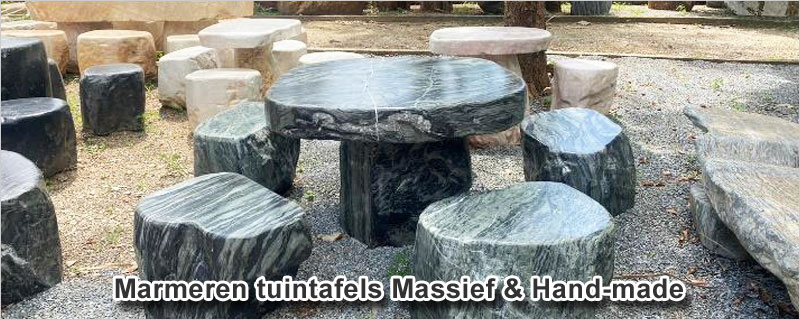 Imperoc heeft een uniek design assortiment natuursteen tuintafels. Handbewerkte massieve tafels gemaakt van 100% natuursteen. Bestel online of kom eens bij ons langs voor schitterende meubels met fraaie afwerking, oersterk en echte kwaliteit. Deze robuuste tuinobjecten worden in Thailand speciaal voor Imperoc met passie gemaakt voor een tuindesign vol allure. Iedere tafel is uniek. Iedere natuurstenen tuintafel is verschillend gevarieerd dus u heeft altijd uw unieke exemplaar.